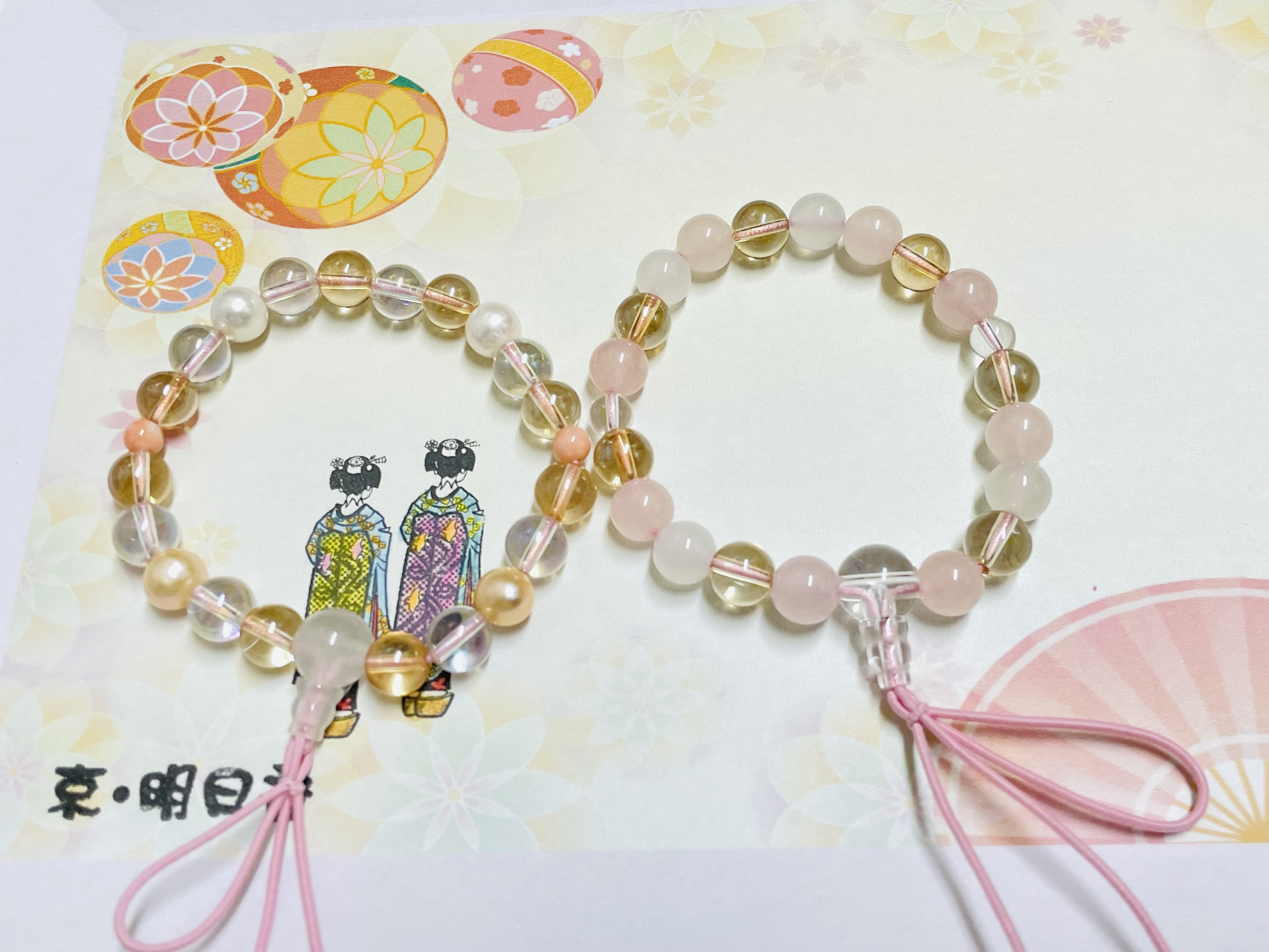 | 京念珠作り体験 1名様~ お好きな天然石をお選びいただき、 ご自分でデザインして頂きます! 通す糸と編む糸の組み合わせや房もお選びいただけます! ※仕上げてからの後日発送となります。(送料サービス) 女性用 ¥6,500~ご予算に合わせて R8.3月まで (天然石限定のお得セットは¥5,950) 男性用 ¥8,600~ご予算に合わせて R8.3月まで (天然石限定のお得セットは¥7,950) |